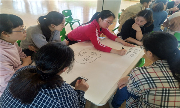 培训中,刘老师首先采取世界咖啡的教研形式,运用大量的视频、案例、照片等向教师们介绍了幼儿科学学习的特点,不同年龄段幼儿科学探究的重点有哪些,什么是分层式投放、分层投放的层次性原则和丰富性原则等。随后,小、中、大不同级组的教师们结合科学区材料就《春天的植物》、《有趣的声音》、《可爱的鸽子》进行分组实践研讨,在玩中讨论材料的价值、玩法,根据玩法如何投放材料以及有什么延伸玩法,该玩法的价值是什么等。