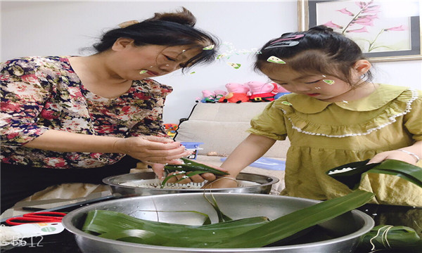 百索绳又称长命缕,出典于东汉的《风俗通义》。俗称“五色绳”“花花绳”,儿童在端午节把它挂在手上或者胸前,俗说可辟邪驱瘟,安度炎暑。挂彩蛋意在祝福孩子“逢凶化吉,平安无事”,看宝贝们都认真的绘画着自己的彩蛋!瞧,我和妈妈在门上还挂了艾叶,用来驱虫,最后,我们都尝试了包粽子和品粽子,哇,好美味,你们吃的是什么馅的呢?