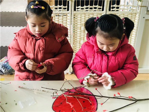 每个班级门口我们都布置了新年新学期的“红色”氛围,班级里到处窗明几净,丰富的游戏材料,温馨的游戏氛围,给孩子们营造了家的感觉。