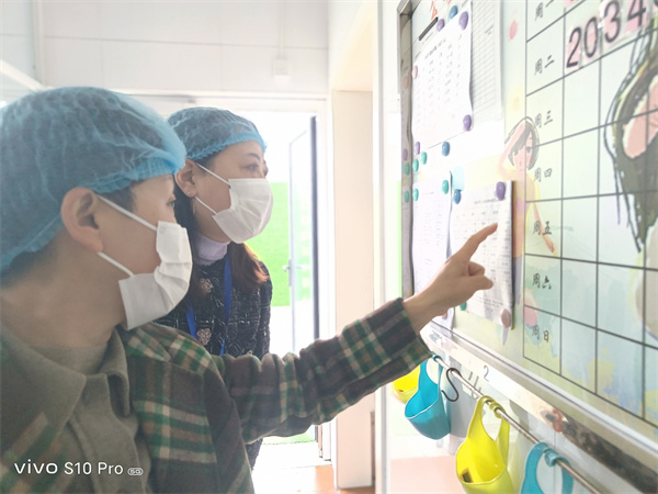 为切实加强幼儿园食品安全监管,有效预防和控制幼儿园食品安全事故的发生,确保幼儿饮食安全、卫生,维护学生合法权益,保障幼儿身心健康发展,督学再次深入食堂,通过实地查看了解食堂信息公示、人员管理、食堂验收储存、消毒设施、餐具保洁、食品留样等关键环节的管理情况,并深入食堂每个角落,对食堂的操作间、消毒间、备餐间等硬件设施进行了详细的检查。通过查阅资料,了解食品采购源头、食材出入库流程、库存数量情况;通过实地查看,杨园长充分肯定了我园在食堂食品安全管理的工作,同时也对进一步做好食品安全工作提出了宝贵建议,对我园行政、教师值班陪餐制给予了高度赞赏。