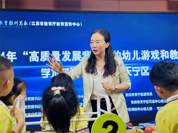 在课程游戏化改革进程中,我们不断更新教师的儿童观、游戏观和教育观,坚守儿童本位的学前教育价值取向,充分发挥名师课堂的示范引领作用,引领教师研磨集体教学活动。来自江苏的优秀教师们智慧展示,利用丰富的教具、生动的课件、有趣的游戏使孩子们沉浸在课堂的海洋中。每一位教师都努力做到“以幼儿为本”、“坚持儿童视角”、“关注游戏体验”,真正践行看见儿童、尊重儿童、追随儿童的课程理念,也给现场的观摩教师提供了研磨、学习的平台与机会。